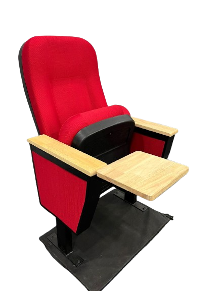 “Smart Seating with Purpose – This premium auditorium chair features a sleek foldable writing pad, wooden armrests, and ergonomic cushioning, making it ideal for seminar halls, training centers, and multipurpose venues.”